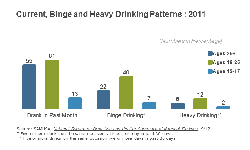 Binge drinking is approximately five drinks in two hours for men or four drinks in two hours for women. One drink is equal to 12 ounces of beer, five ounces of wine, or 1.5 ounces of distilled spirits, according to the University Physician’s Office.